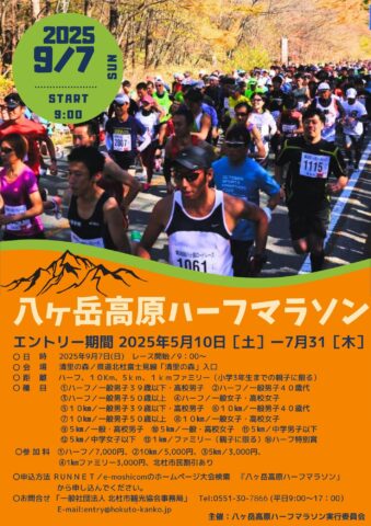 9/7㈰ 八ヶ岳高原ハーフマラソン開催【終了】